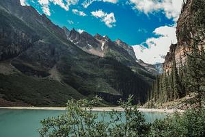 The end of Lake Louise, Banff National Park, Alberta, Canada.