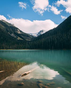 looking up at the glacier from lower Jofree, Jofree Lakes Provincial Park, British Columbia, Canada.